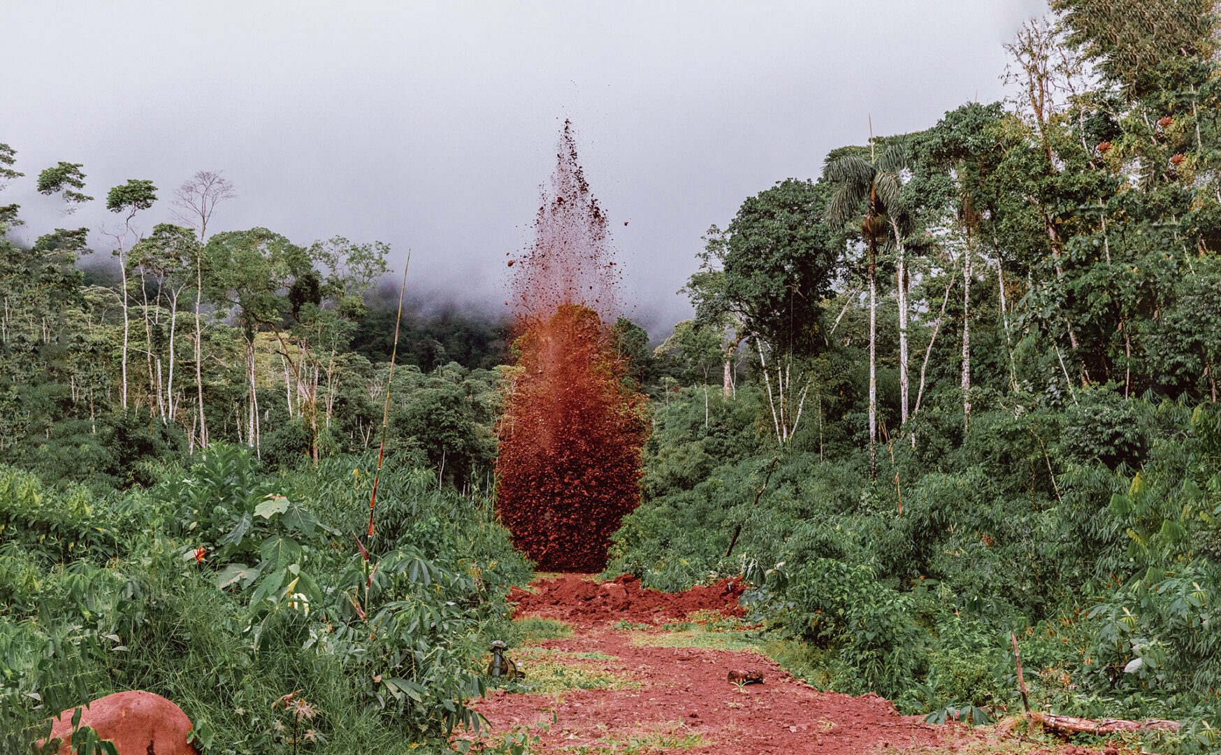 Le detonazioni di queste porzioni di strada comportano una trasformazione densa di significato, non solo geofisica ma anche simbolica. La danza della terra che si libra nell’aria in seguito alle esplosioni ricorda dipinti astratti che invitano all’interpretazione. È una denuncia al pericolo che mina l’integrità della foresta amazzonica e dell’intero pianeta.